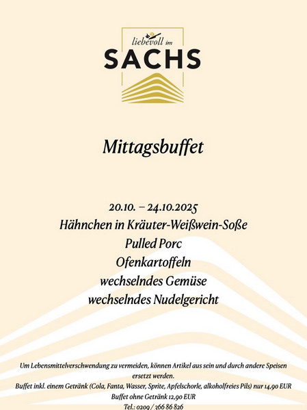 "liebevoll im Sachs" Mittagsbufett vom 20.10. - 24.10.25!